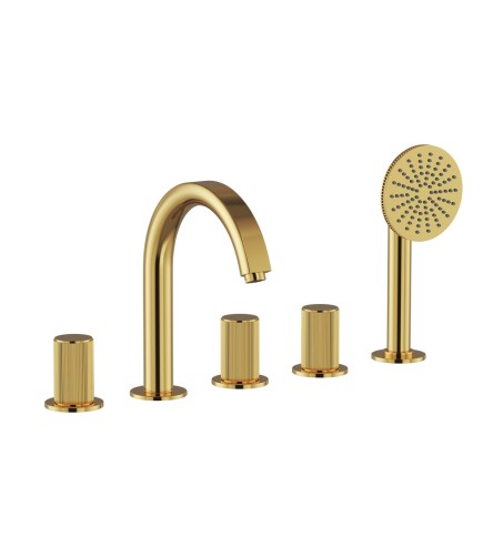 5-Hole Bath Tub Mixer with Hot & Cold Control Cocks Round Spout, Divertor & Hand shower with 8mm dia & 1.5M Flexible Tube