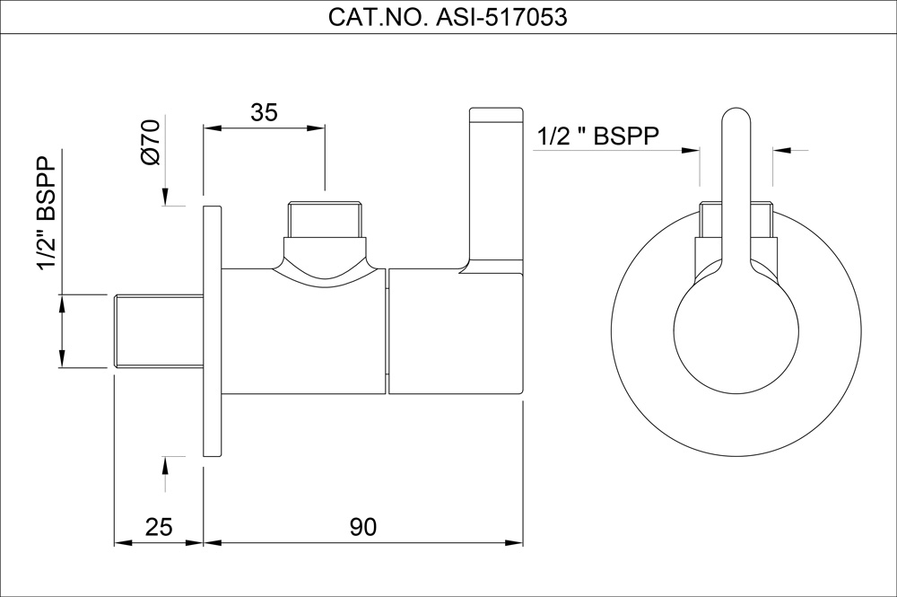 Angular Stop Cock with Wall Flange