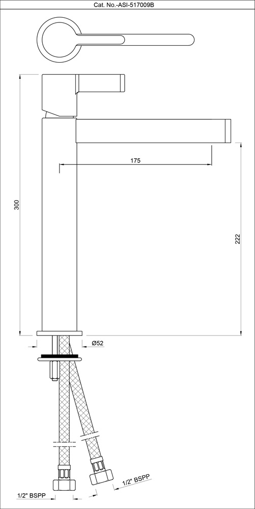 Single Lever Tall Boy Basin Mixer without Popup Waste System with 600mm Long Braided Hoses