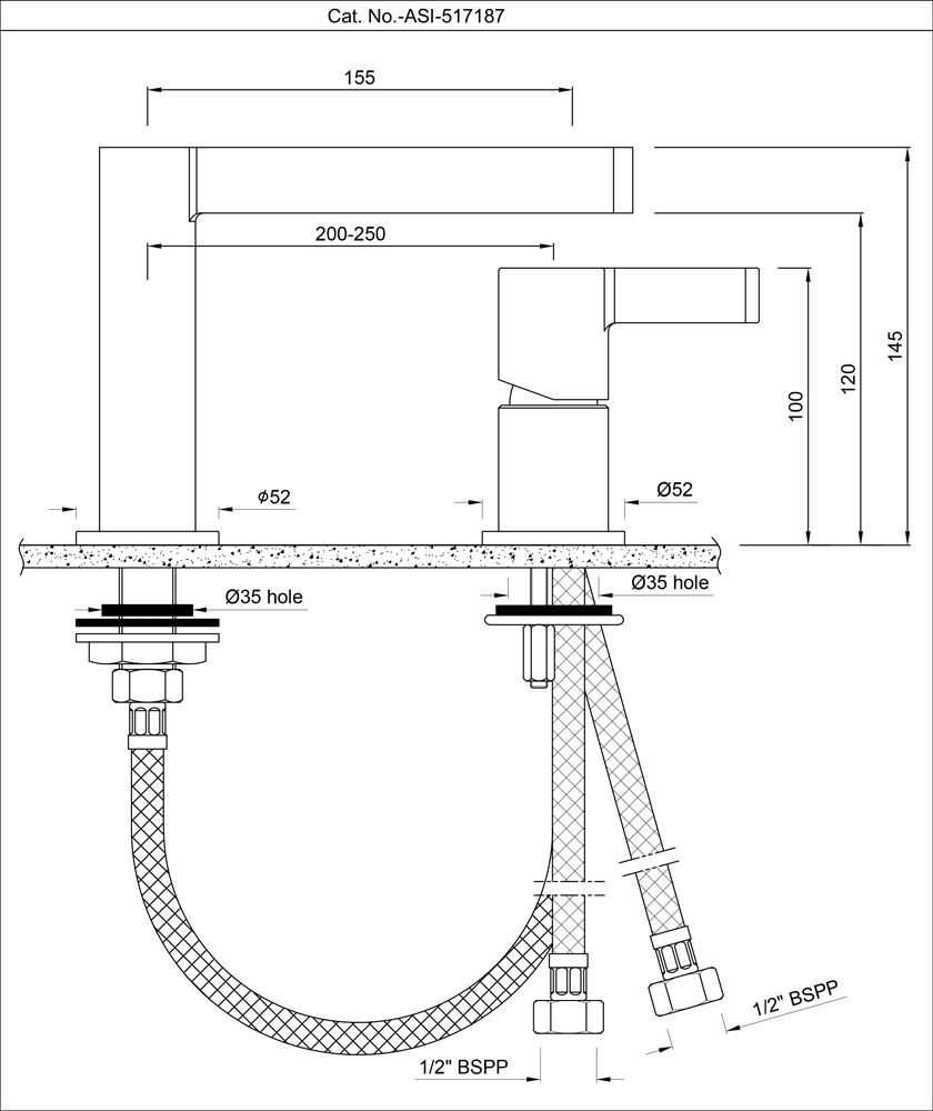 2-Hole Deck Mounted Single Lever Basin Mixer without Popup Waste System