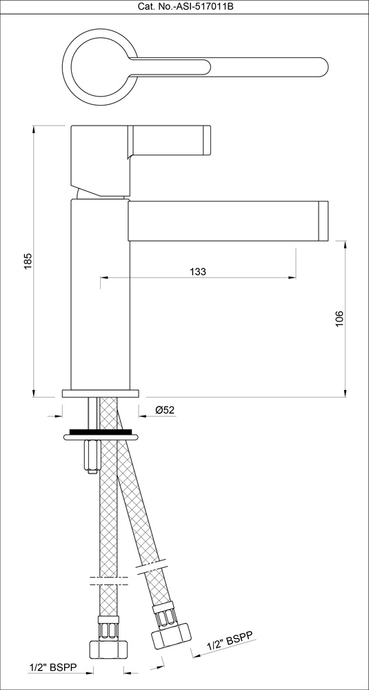 Single Lever Basin Mixer without Popup Waste with 450mm Long Braided Hoses
