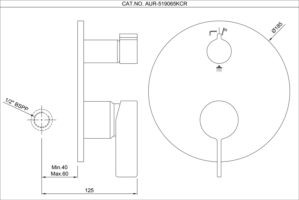 Exposed parts kit of single Lever diverter consisting of operating lever, Diverter Knob & wall flange (with seals) Only (Compatible Concealed Part ALA-509065CR is sold separately)