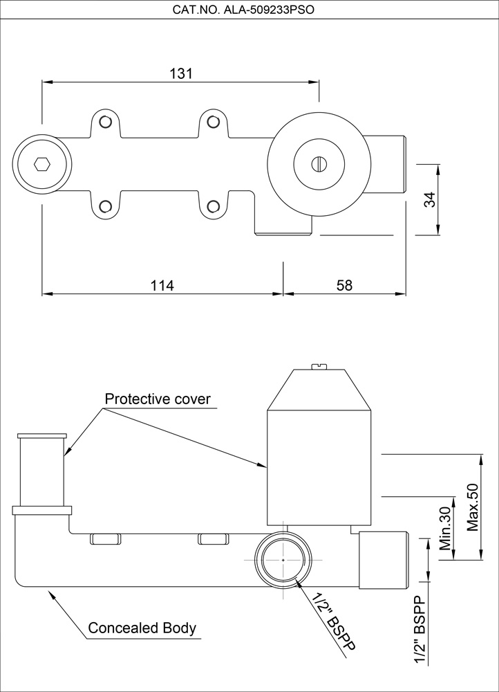 Concealed Body for Single Lever wall mounted Basin Mixer with protection cover old, But without Exposed Parts