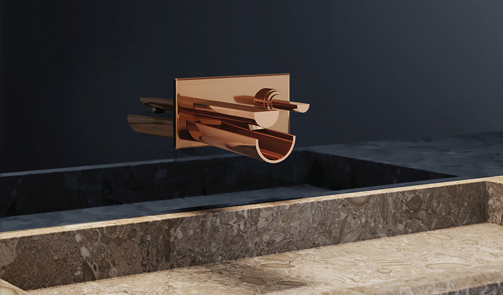 Inspired by the age-old use of bamboo in channeling water from rivers and brooks. Confluence's biomorphic design delivers a calming, serene flow of water from the half-cut-bamboo style faucet.