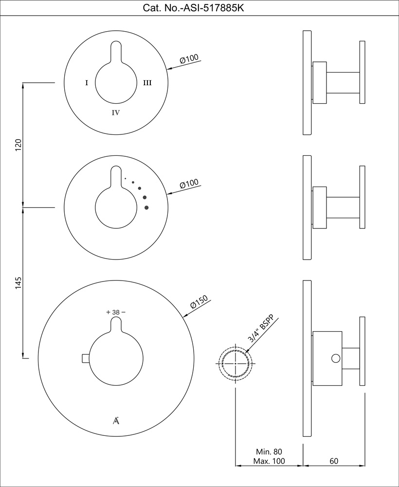 Exposed Part Kit of Thermostatic Shower Mixer with 4-Way Diverter, Round Flanges (Compatible concealed part ALA-509885 is sold separately)