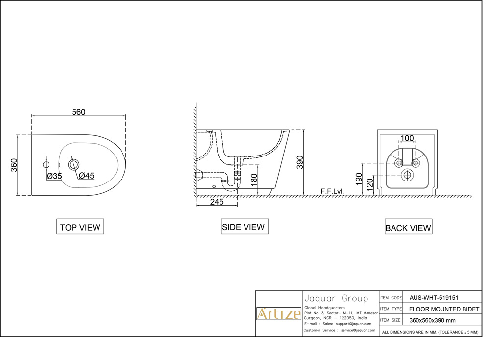 Floor Mounted Bidet With Fixing Accessories, Size: 360×560×390 mm