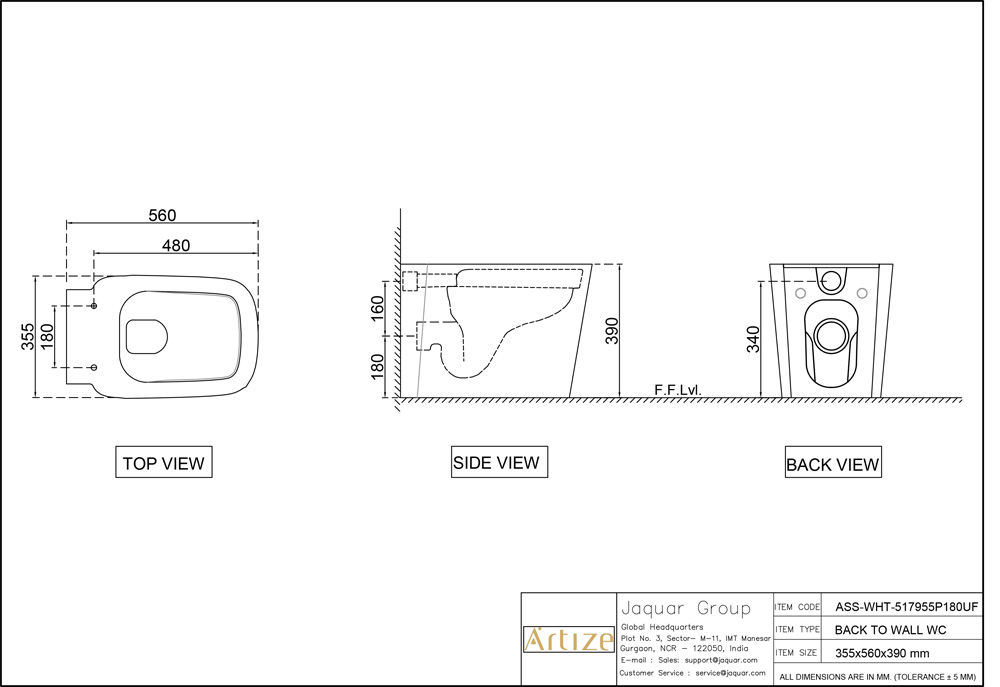 Rimless Back To Wall WC With UF Soft Close Seat Cover, Hinges, Fixing Accessories, Size: 355×560×390 mm, P T rap- 180 mm