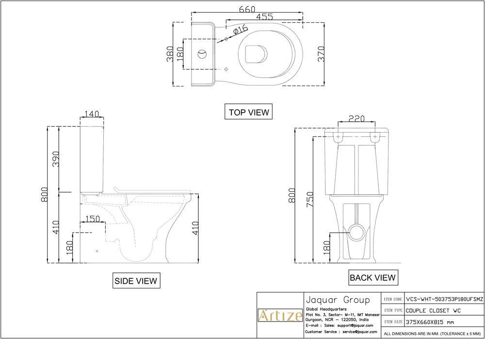 • Jaquar reserves the right at its sole discretion, to change/modify/alter any product specification at any time without notice, where improvement can be effected in design, development and dimensions.