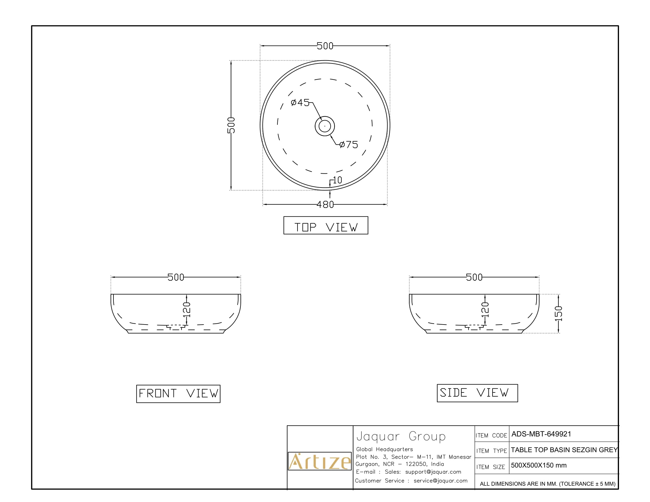 • Jaquar reserves the right at its sole discretion, to change/modify/alter any product specification at any time without notice, where improvement can be effected in design, development and dimensions.