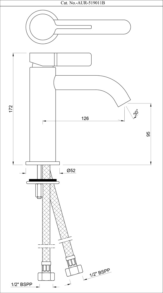 Single Lever Basin Mixer without Popup Waste with 450mm Long Braided Hoses